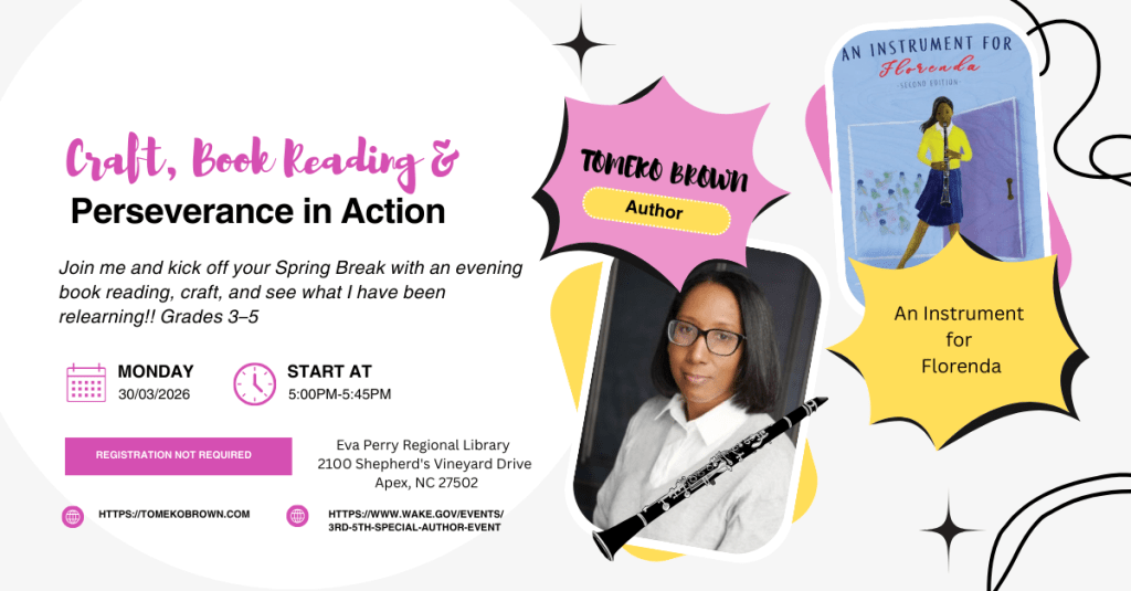 Craft, Book Reading & Perseverance in Action -Join author Tomeko Brown for a special school-age program at Eva Perry Regional Library!